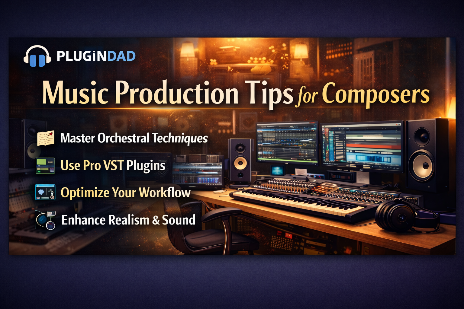 Professional music production tips for composers include optimizing your workflow, using orchestral VST plugins effectively, mastering MIDI articulation, and layering cinematic textures for depth and realism.